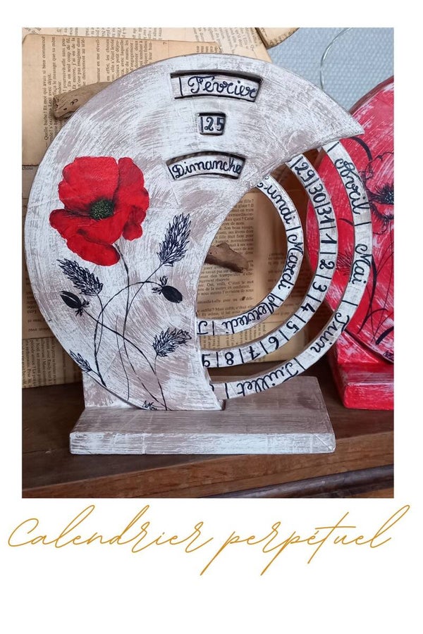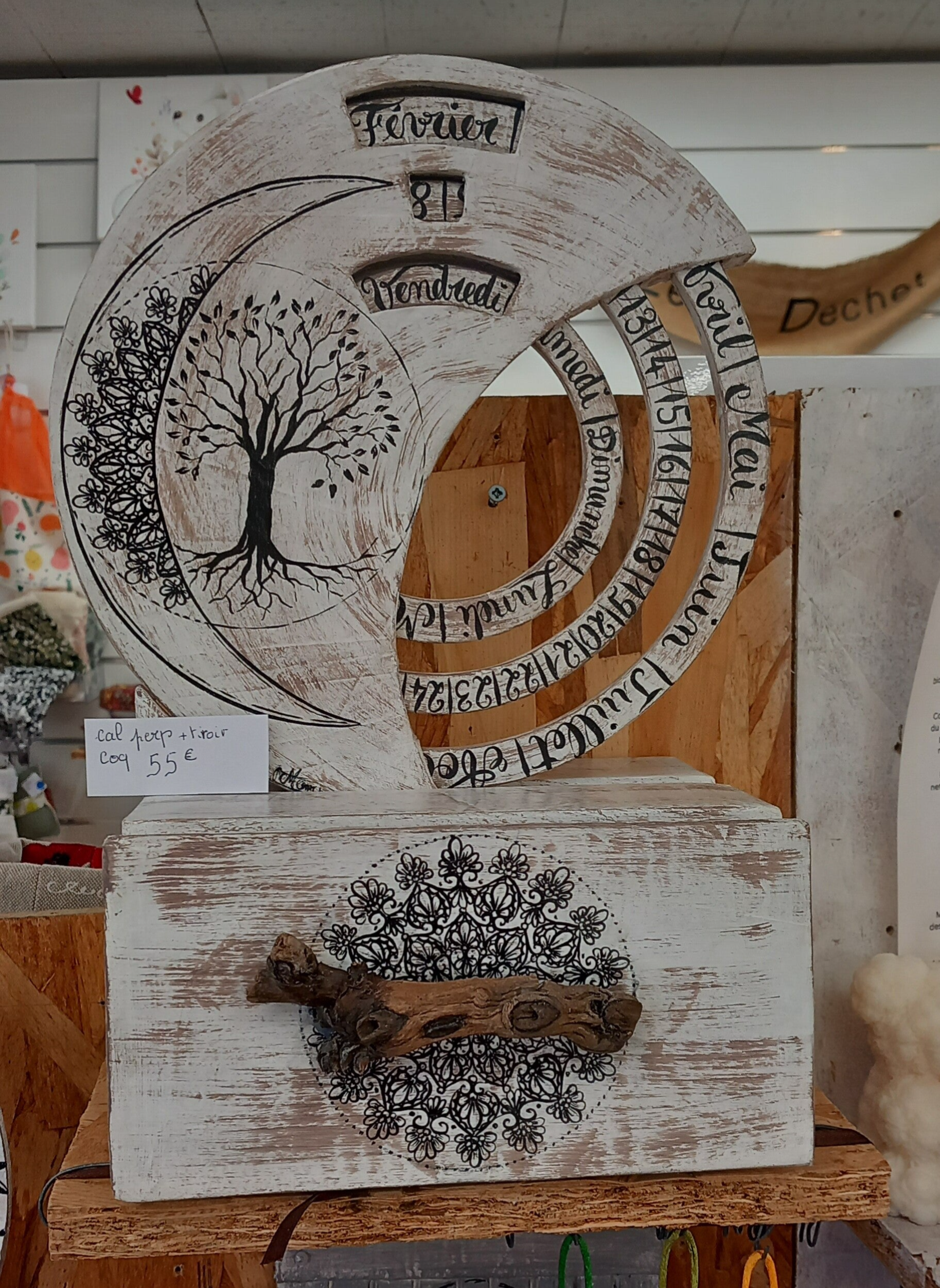 Les calendriers sont ensuite peint avec une peinture acrylique puis entièrement décoré à la main, avant d'être protégé par un vernis vitrificateur.