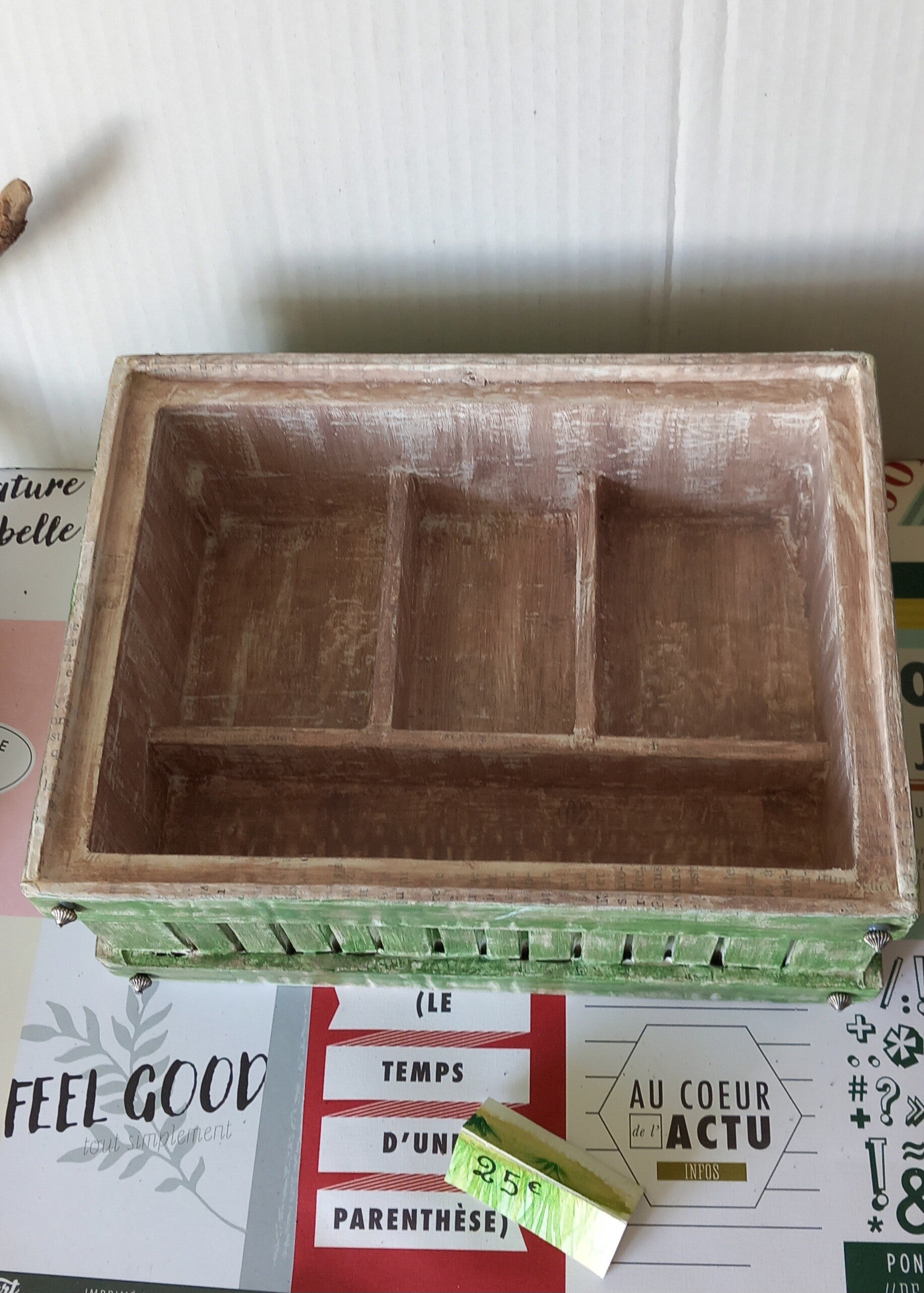 Boîte double fond, plateau amovible 3 cases et 4 cases dans le fond.